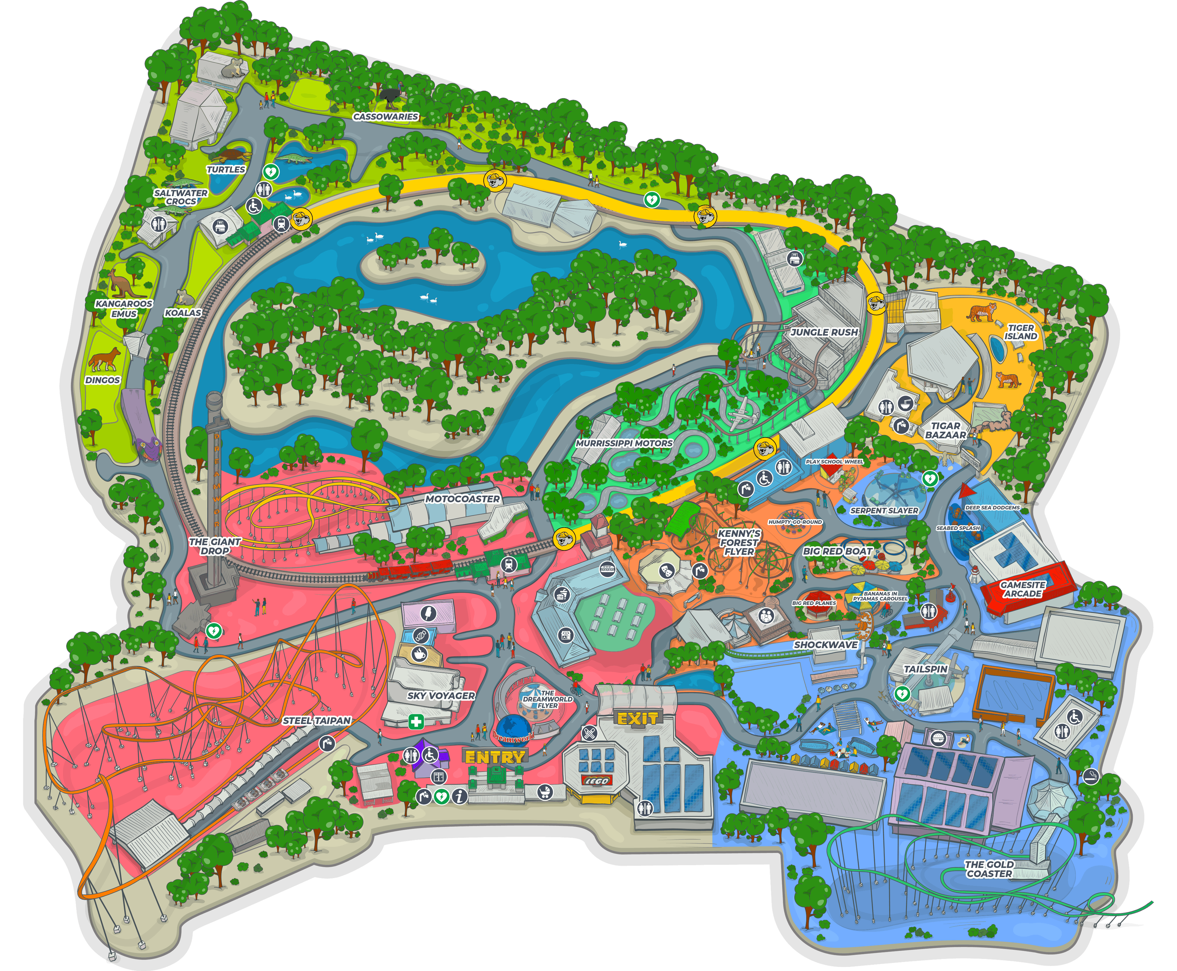 Strap into the Steel Taipan – 1.2km of venomous twists, gut-dropping launches, and high-speed inversions that will leave you sssmiling from ear to ear.