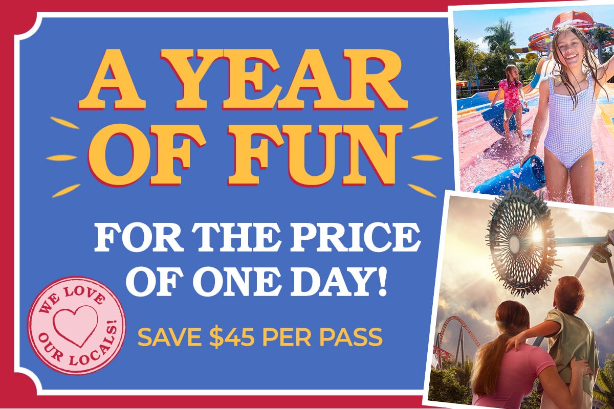 For a limited time only, Dreamworld is giving Queensland (postcodes 4000-4999) and NNSW locals (postcodes 2450 - 2490) the chance to score our best-value annual pass, buy an All Worlds Annual Pass for the price of a 1-day ticket. It’s the ultimate year of fun, all in one unbeatable locals-only offer. Swipe to find out more.